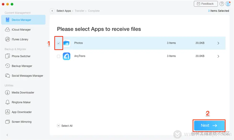 步骤 3。 选择要在 iPhone 上接收的照片应用