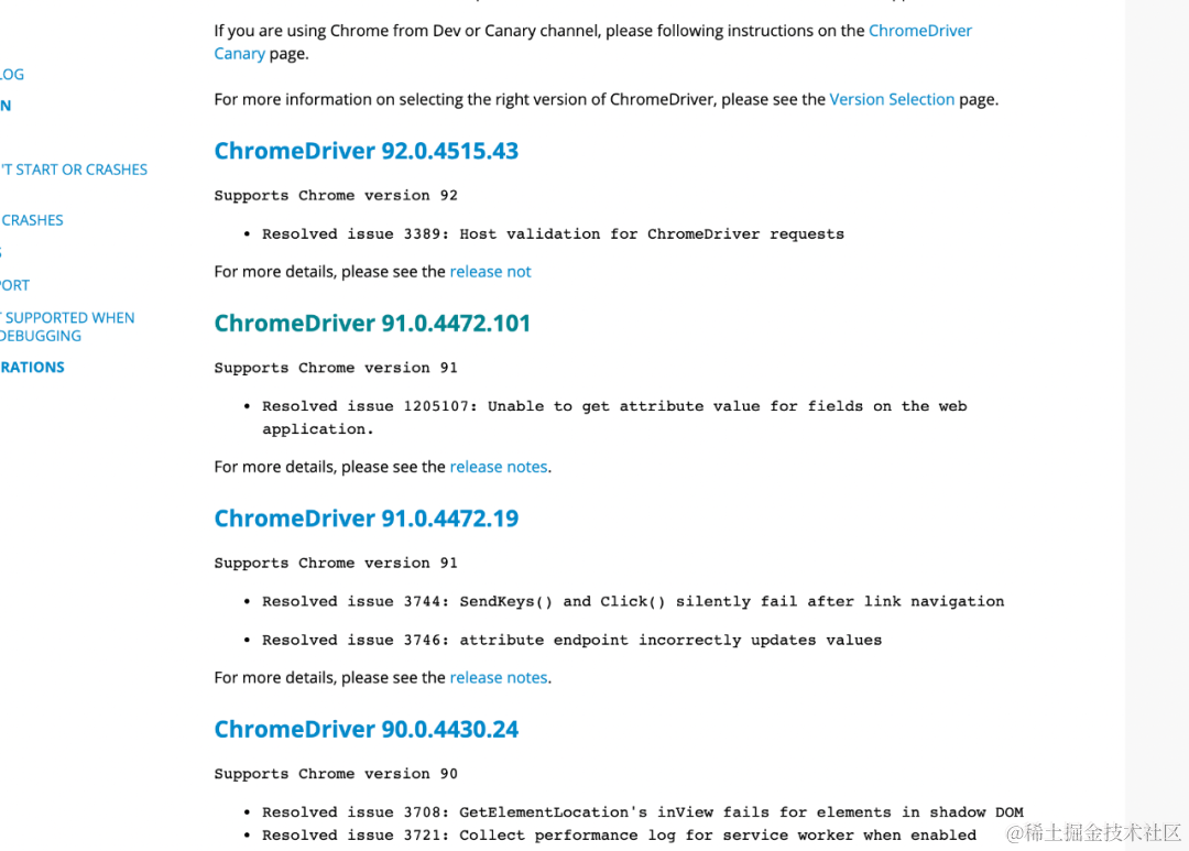 安装完 selenium 后,还需要再下载 webdriver ,不同的浏览器需要下载不同的驱动,以下是常见浏览器驱动的下载地址: