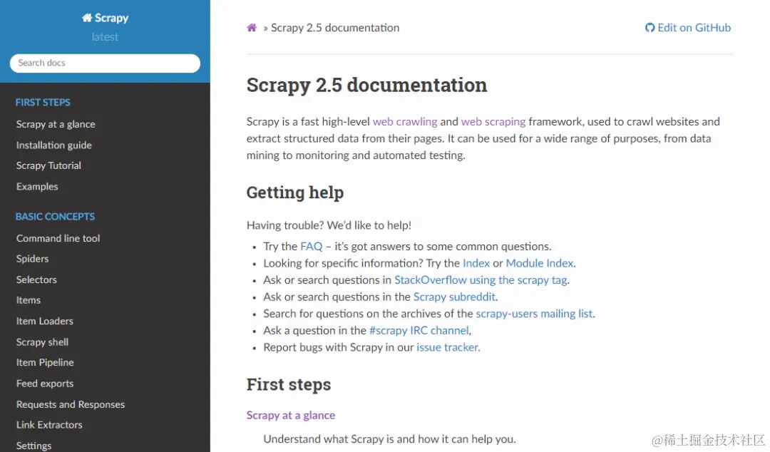 例如 Scrapy 的文档
