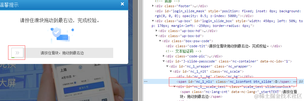 登录之后又出现了滑块验证,这个问题不大, selenium 下的 ActionChains 可以完美解决。实验了几次之后居然一直不通过,一番 google 之后。才惊觉现在的滑块验证码是如此的狡猾,居然可以识别是不是用户滑动的。最后参考 《selenium篇之滑动验证码》① 这篇文章可以模拟用户先快速滑动然后慢下来的滑动行为。