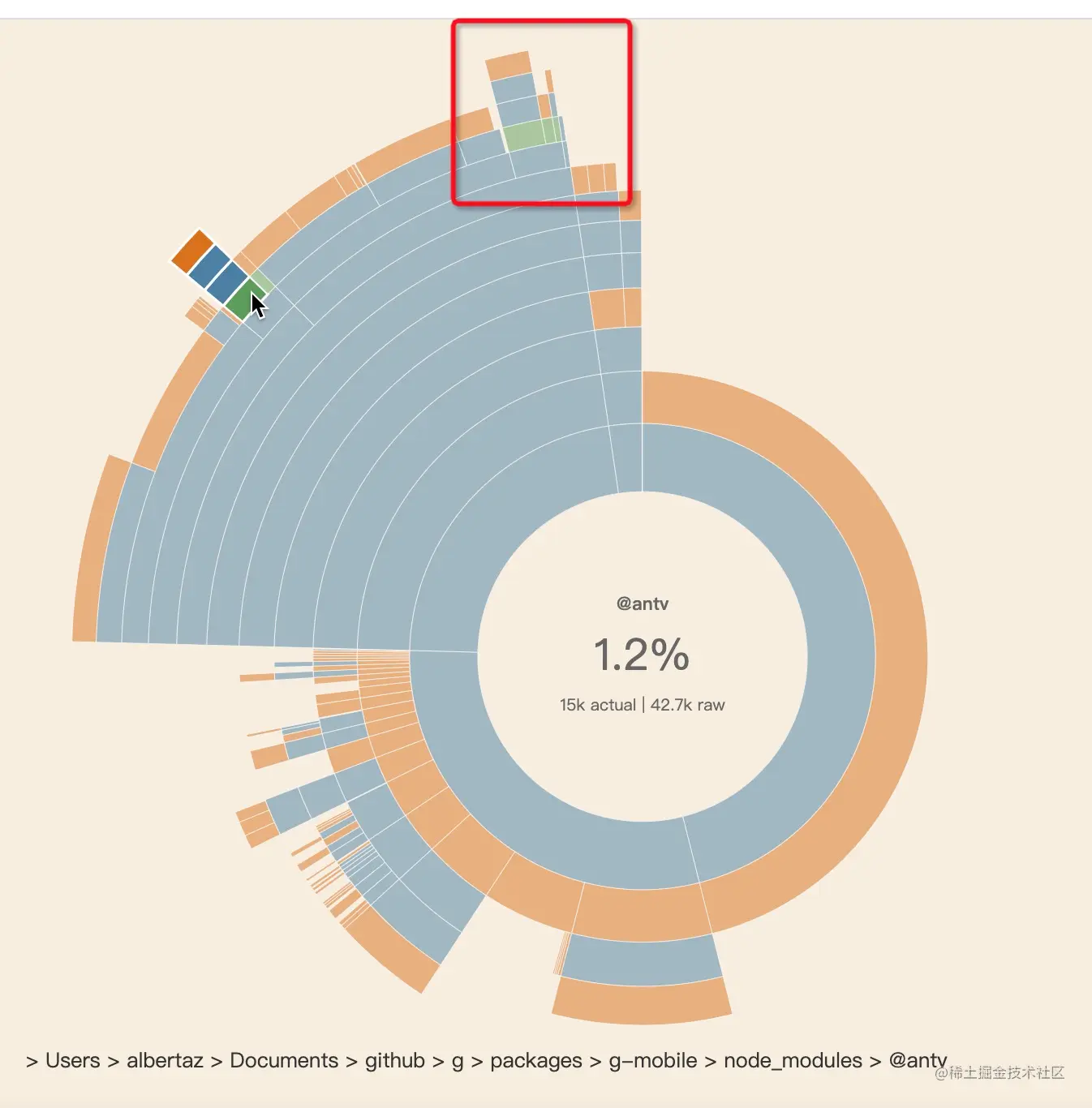 接下来重点放在 370k 的 其他 node modules 上:
