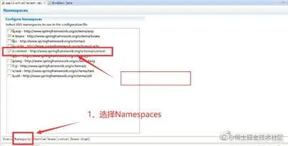 进行包扫描依赖于Context名称空间,所以需要在IOC中加入该名称空间,加入名称空间的方法有两种,一种是在IOC的头文件中加入如下代码: