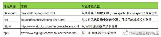 对于spring中常用地址书写,有时候需要使用classpath,而有时候又需要其他,针对不同的路径书写,有不一样的含义和使用:具体看下表: