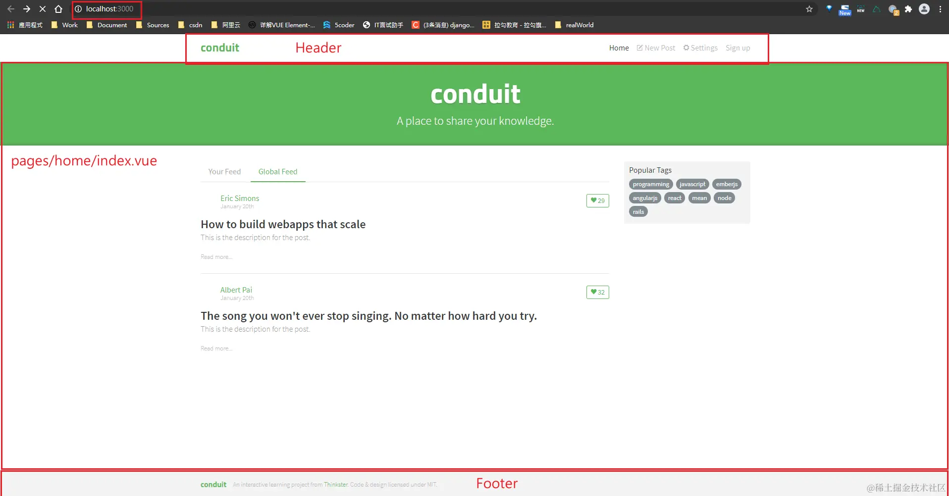 - 页面模板:github.com/gothinkster…