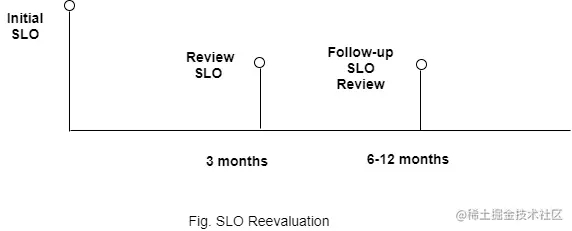 每隔几个月重新评估一次 SLO 很重要,因为如果达到了 SLO,但客户仍然不满意并在 Twitter 或 Zendesk 上抱怨,那就不好了。每隔几个月审查和重新评估的 SLO,并每六到十二个月跟进一次类似的审查。