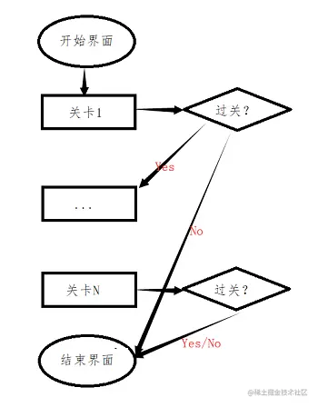 即每关结束判断一下是过关了还是GG了,过关了就进入下一关,否则就直接进入结束界面。当然最后一关是个例外,因为结束之后肯定要进入结束界面。具体而言,主逻辑代码实现如下: