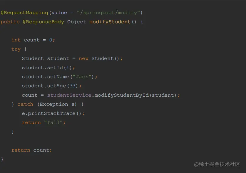 通过 SpringBoot +MyBatis 实现对数据库学生表的更新操作,在 service 层的方法中构建