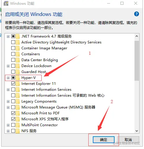 Hyper-V的启用如下: