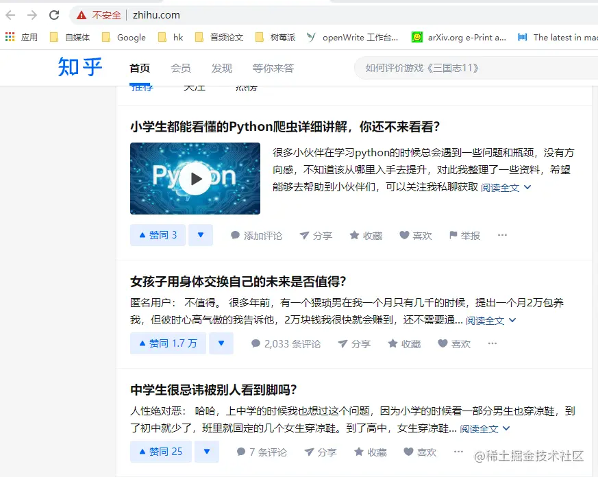 现在页面中什么也没有,那下面我们在刷新一个知乎页面