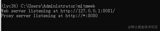 新开一个cmd(终端)窗口,输入下来命令启动mitmweb