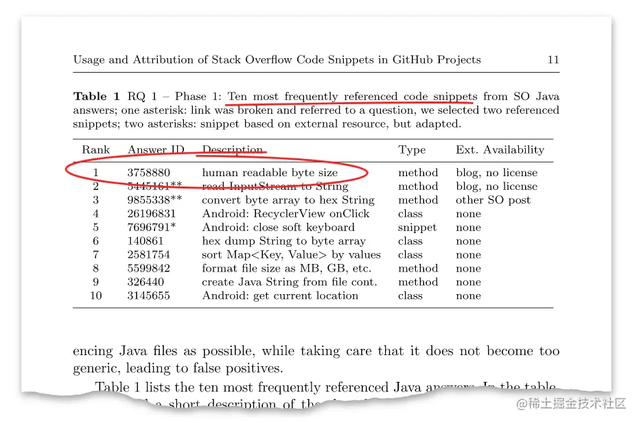 该论文的主旨可以概括成一点:人们是否在遵守Stack Overflow的CC BY-SA 3.0授权?也就是说,当人们从Stack Overflow上复制粘贴时,会怎么注明来源?