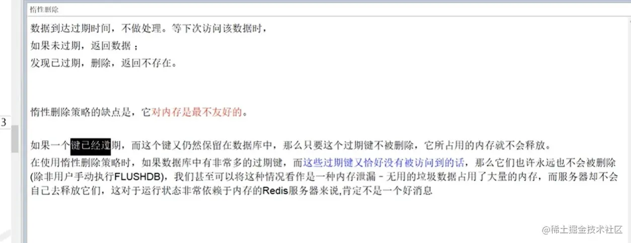 起初,数据经过过期时间后,会在内存中晃荡,不会立马删除,数据会慢慢的遇见第一个经理,名为过期键的删除策略