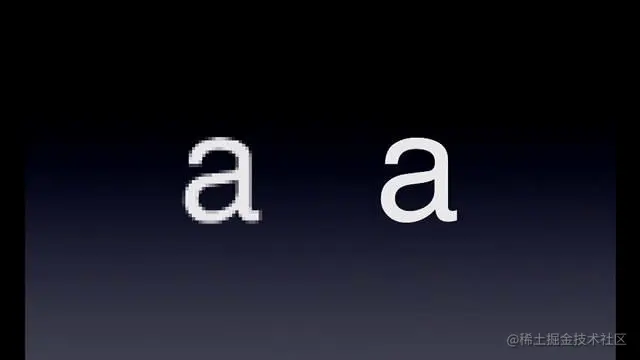 非r屏与r屏在显示字母a的左上角边沿时的细节对比
