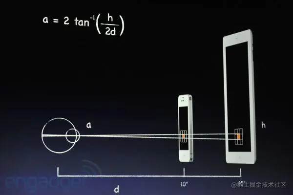 因为视距的原因,达到同样的 Retina 效果,物理屏幕的 ppi 并不需要一致,视距越大,ppi 要求越低。