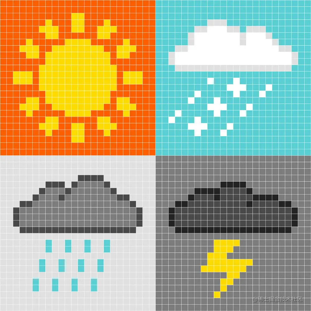 我们知道,位图(png, jpg, gif等)是由一个个像素点构成的,每个像素都具有特定的位置和颜色值,我们称之为位图像素,如下图: