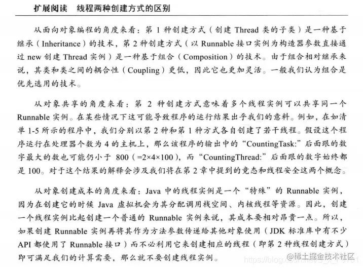 Thread和Runnable区别: Thread才是Java里对线程的唯一抽象,Runnable只是对任务(业务逻辑)的抽象。Thread可以接受任意一个Runnable的实例并执行。
