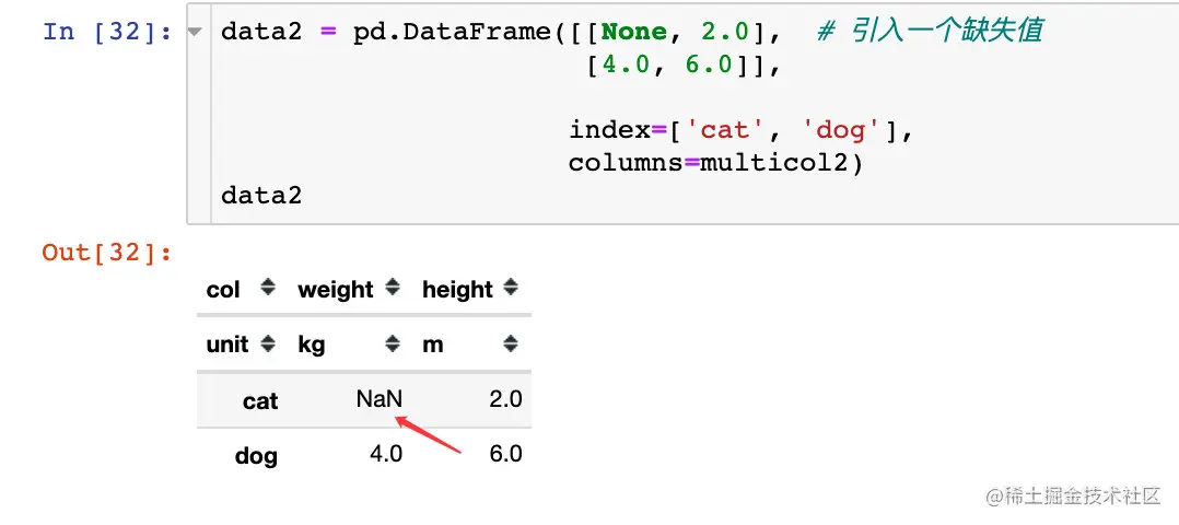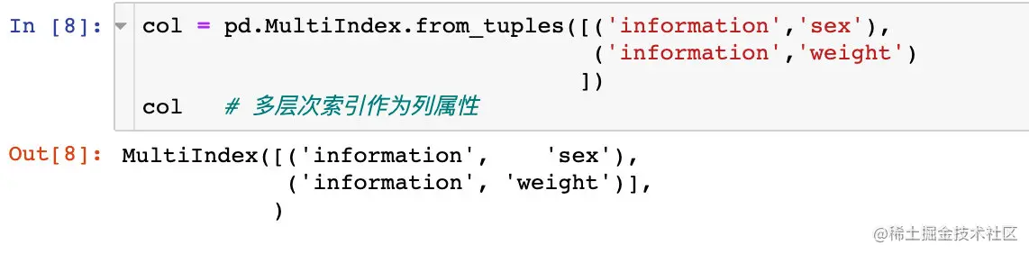 multicol2 = pd.MultiIndex.from_tuples([('weight', 'kg'), # 多层次列属性