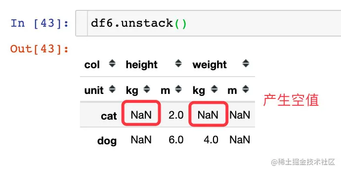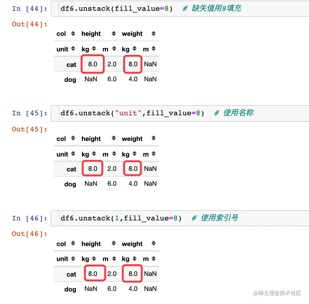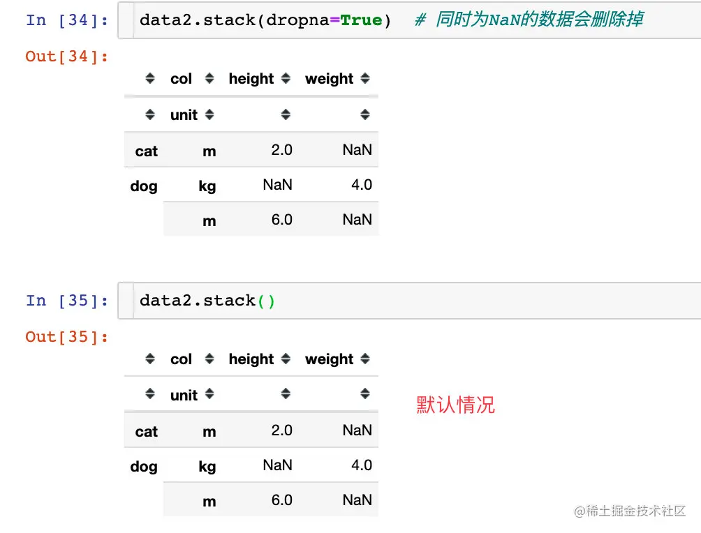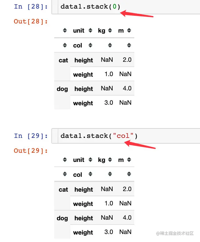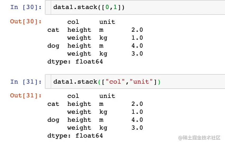 来自官网的两张图,在不同的索引号进行unstack操作的结果对比,默认是unstack(1):