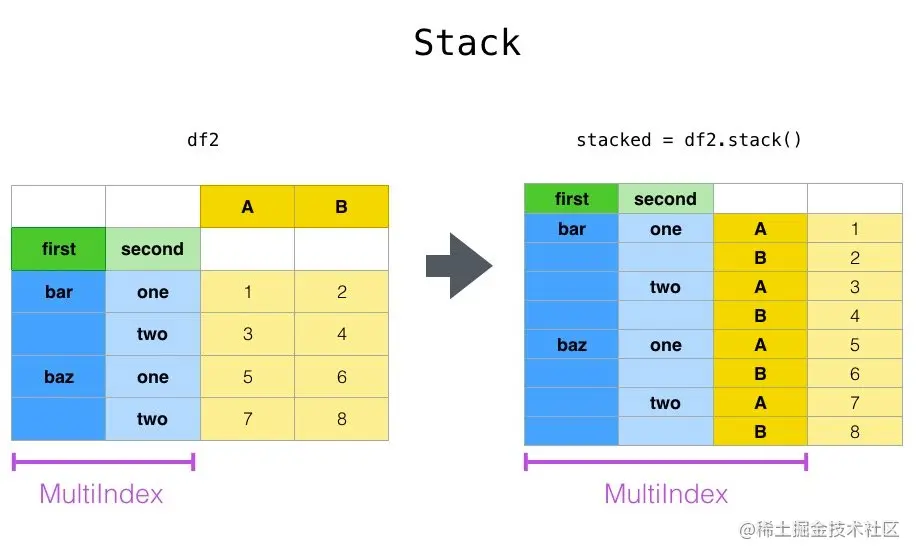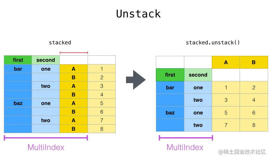 通过官网的一幅图来解释下:列属性AB变成了行索引AB