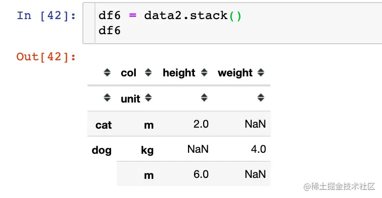 还有一个特点:当我们对单层的DataFrame进行stack操作之后,会变成Series型数据: