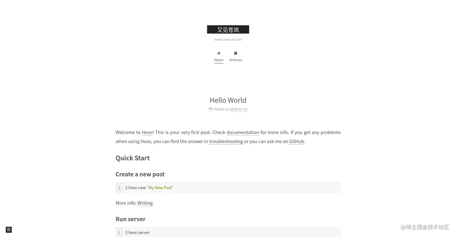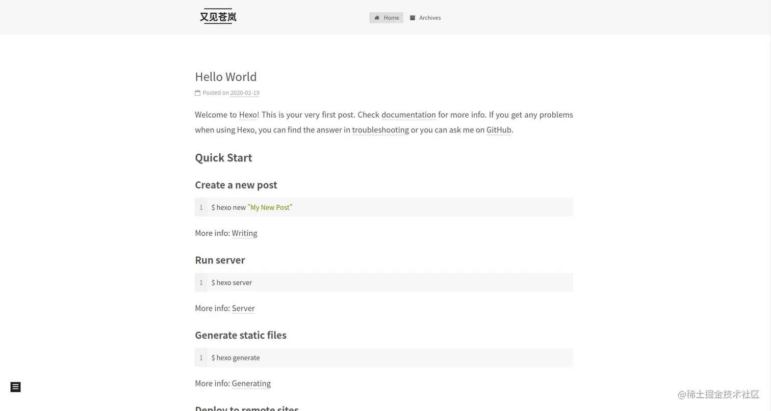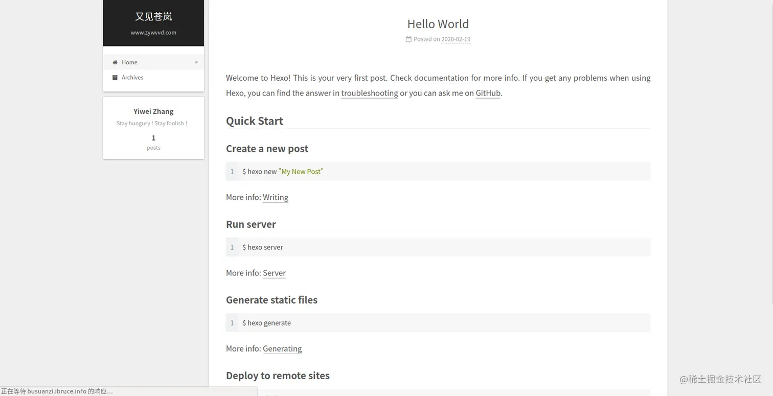 此时next已经安装并配置完成,更新hexo即可查看效果。