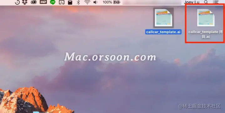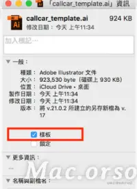 你会发现上图的档名是「callcar_template 拷贝.AI」,因为在开启档案时,Mac 已经自动帮你复制一份,并开启复制后的档案了。