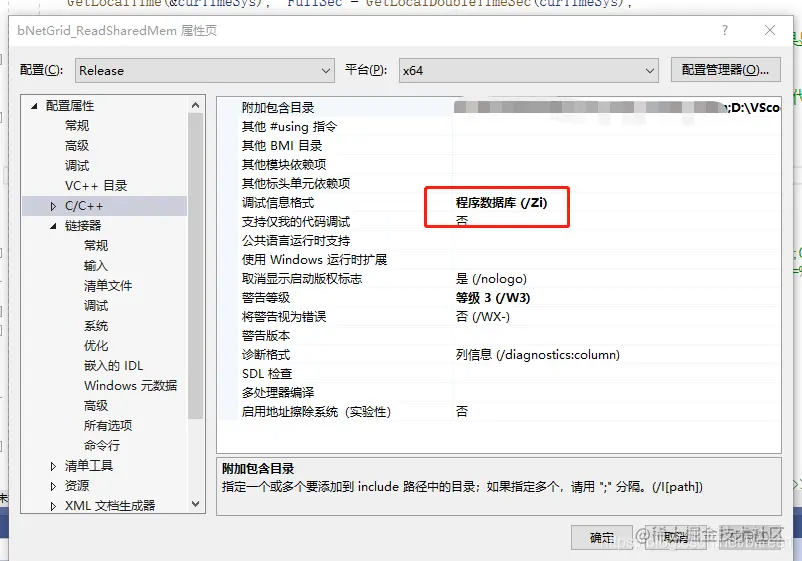 1、设置 C++ =>调试信息格式 =>程序数据库**