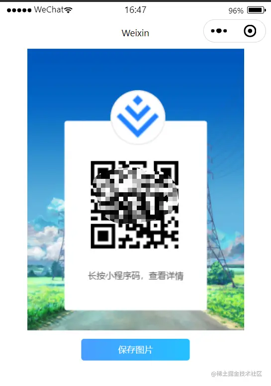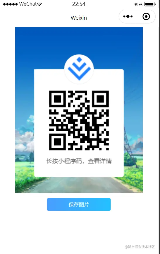 在折腾了一番之后,最终决定提供二维码,供用户下载,扫码关注。这里我们有两种方案,第一种是让后台生成然后返回图片链接,只需要传后台所需要的参数就行了,第二种方法,用canvas生成分享海报。最后我们选择了使用canvas制作分享海报的方式。