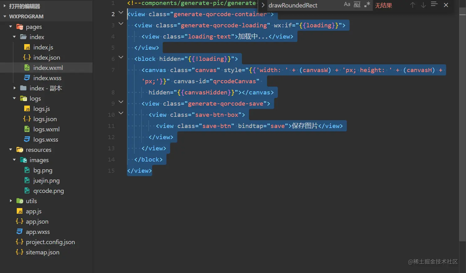 2.1 在pages\index\index.wxml中,先清空默认生成的代码,然后加入下面的代码。