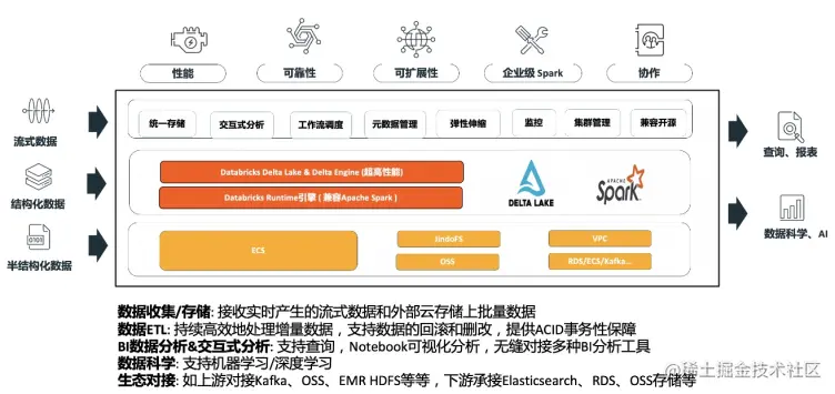 - **完整 Spark 技术栈集成:**一站式集成 Spark 引擎和 Delta Lake 数据湖,100%兼容开源 Spark 社区版;Databricks 做商业支持,最快体验 Spark 最新版本特性