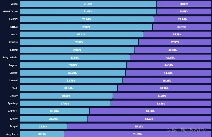 近年起步不久的Svelte成为了绝大部分开发者最喜爱的框架。