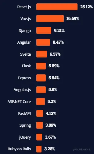 4. 今年最受欢迎的框架是刚刚发展不久的Svelte。