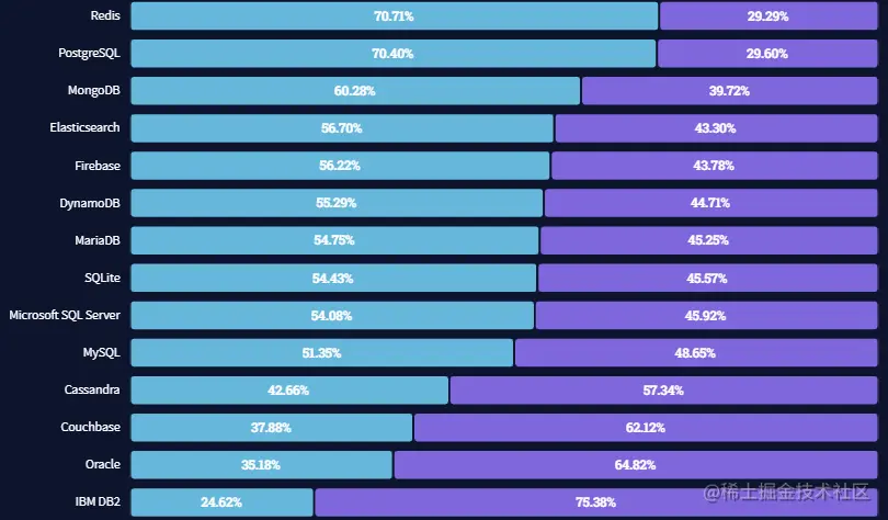 最受欢迎的数据库则是Redis,但是与PostgreSQL仅仅相差不到1%,而相反,IBM DB2已经连续获得最受开发者厌恶的数据库称号。