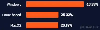 Windows仍然是最受开发者欢迎的桌面操作系统,随后是Linux,MacOS紧随其后。