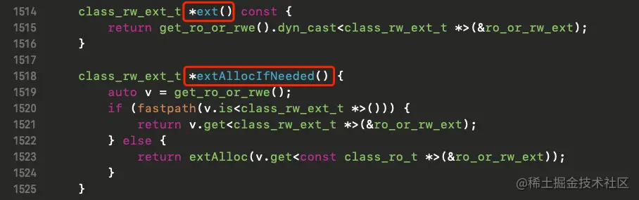 在ext()方法下边,我们看到了extAllocIfNeeded()方法,此方法是创建ext的,那么它是在哪调用的呢?