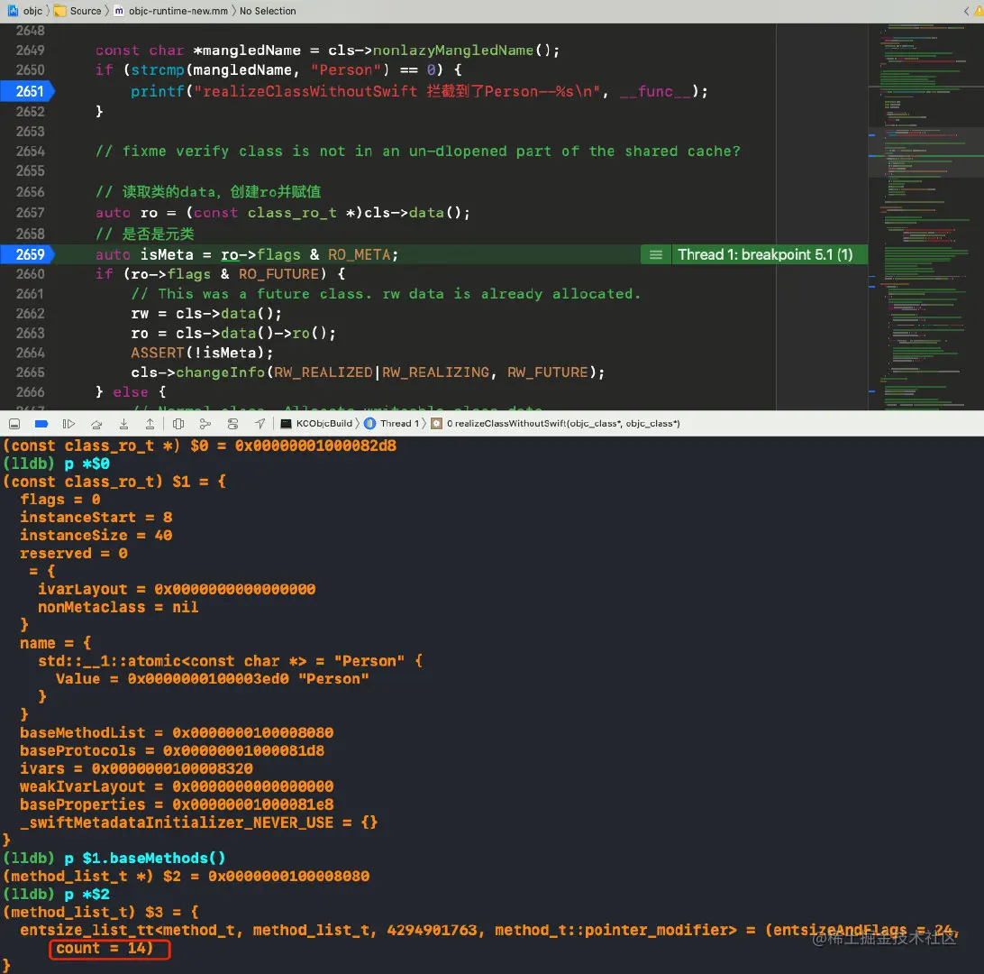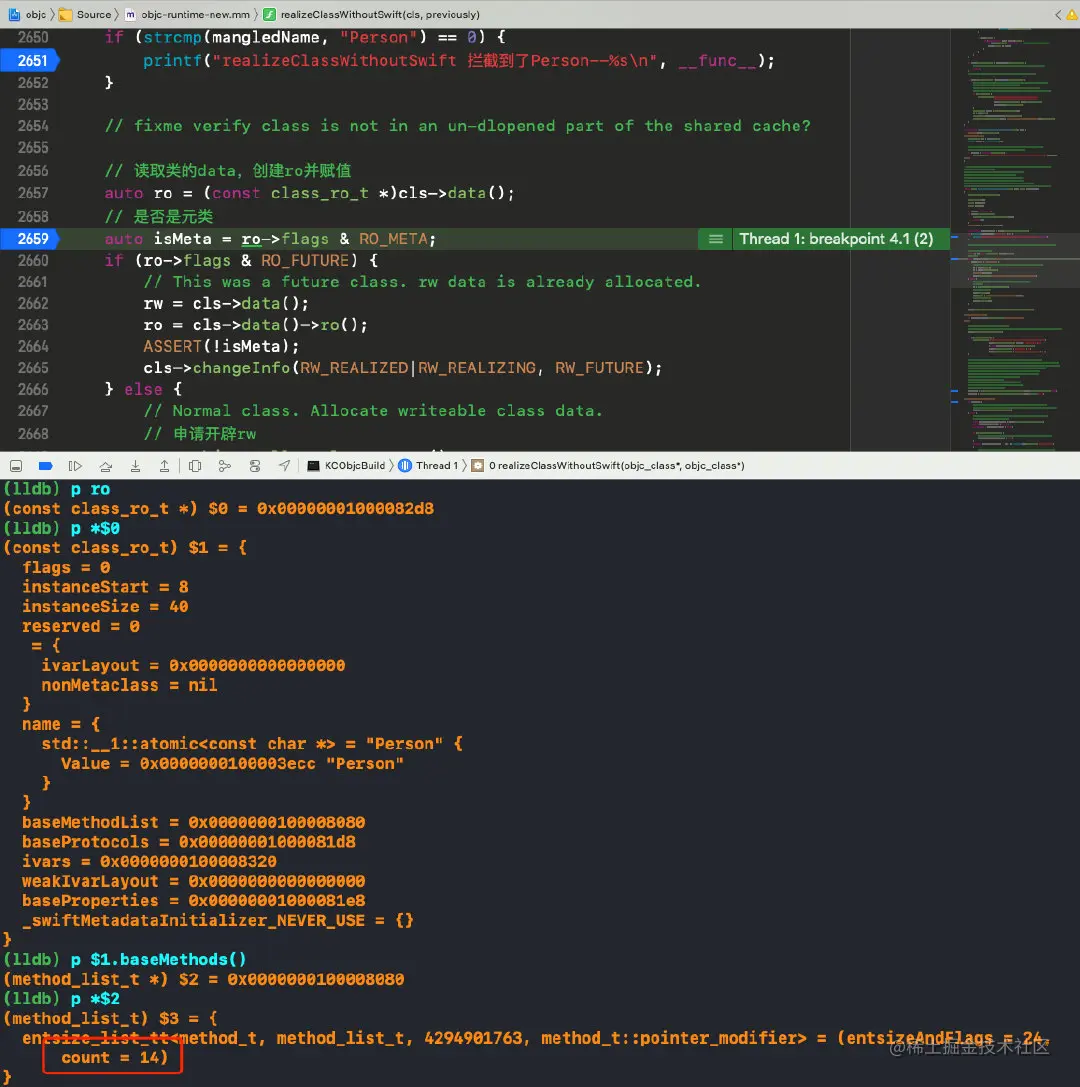流程走到realizeClassWithoutSwift之后,打印看一下ro数据: