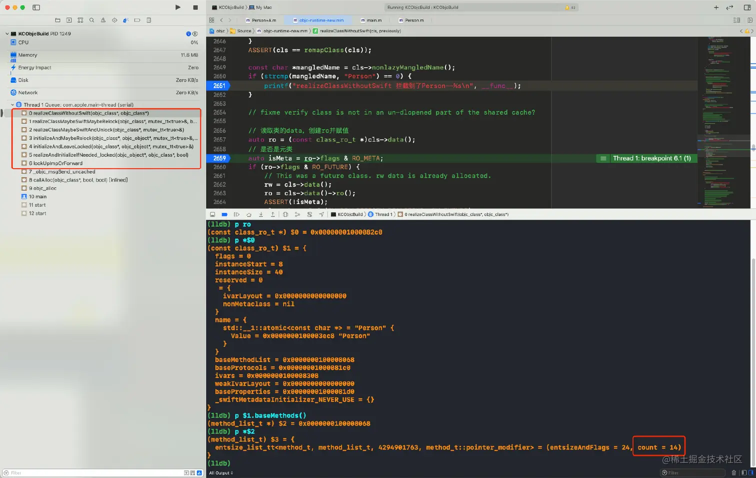 我们在之前的文章中讲了类的加载原理,但是到目前为止,类的rwe什么时候才会赋值,我们依然不得而知,但是我们能推测出应该是在methodizeClass方法中,但是我们之前调试的结果,rwe在这个方法中是nil,那么有没有其他办法能够让rwe有值呢?我们注意到methodizeClass方法的注释Attach categories是附加类别,那么类别是否会影响到rwe呢?