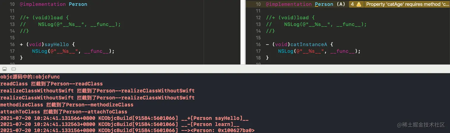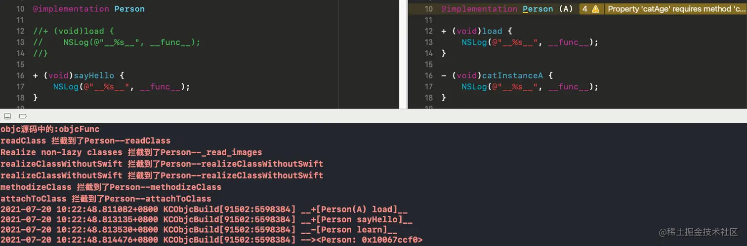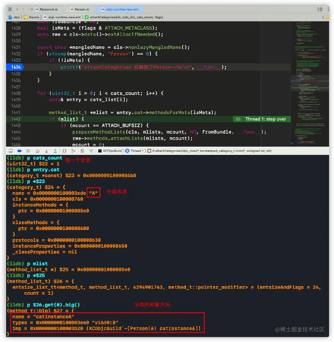 此处for循环的刚好是4个分类,当i= 0,也就是拦截到Person+C的时候,我们在之前的流程已经走过了(单个分类加载),这次来看i= 1的时候,也就是加载第二个分类时的情况:
