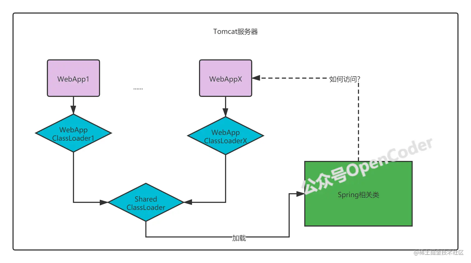 再次,Shared类加载器负责加载Web应用共享类,这些类tomcat服务器不会依赖。