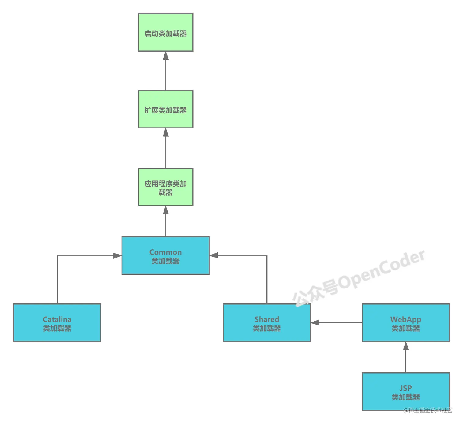 Tomcat这种web容器中的类加载器应该如何设计实现?首先我们来看下Tomcat类加载器的设计结构: