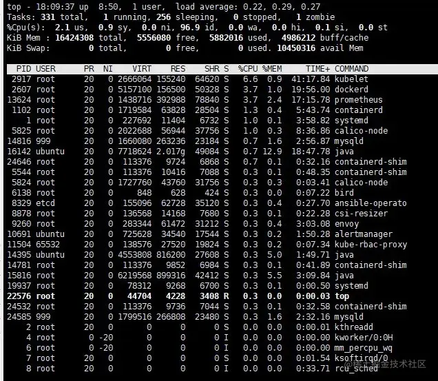 在 Node 节点,使用 top 命令可以看到节点 CPU 达到负载 80% 预期效果。