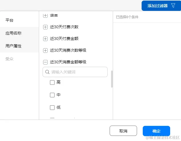 进入“付费分析”报告页面通过“过滤器“筛选“首次付费用户”人群,查看首次付费人群的付费规律,制定运营策略。