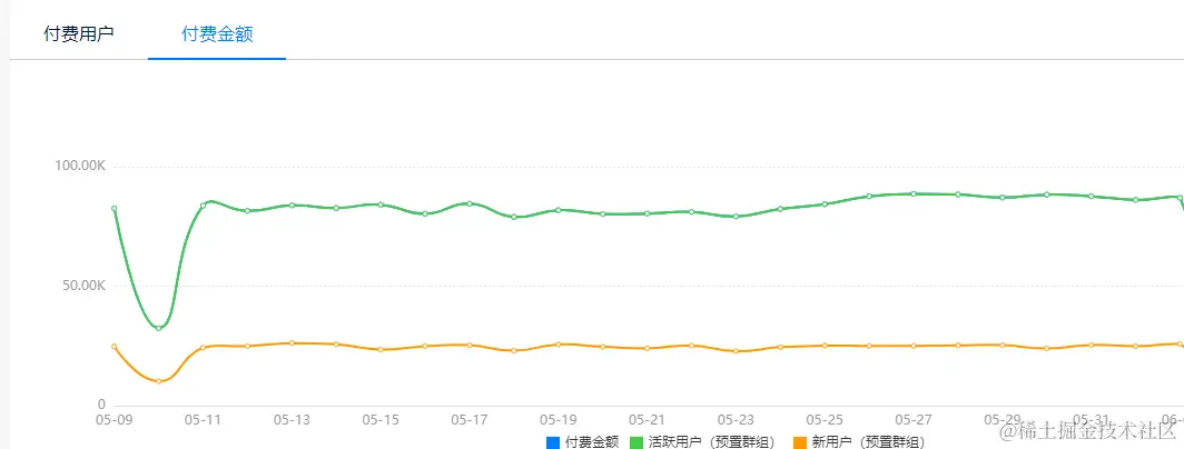- 确定用户付费习惯 点击进入“付费分析”报告页面,查看当前APP用户付费用户变化趋势以及付费金额变化趋势,根据趋势变化,结合过滤过滤器能力以及对比分析能力确定不同人群付费习惯。