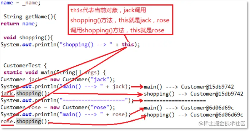 通过以上的测试我们得知:System.out.println(name + " is shopping!")和System.out.println(this.name + " is shopping!")是等效的。