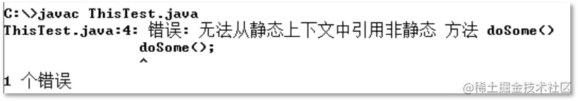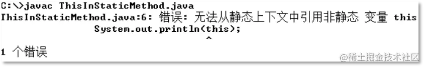 我们来看看this是否可以出现在static的方法当中,请看以下代码以及编译结果: