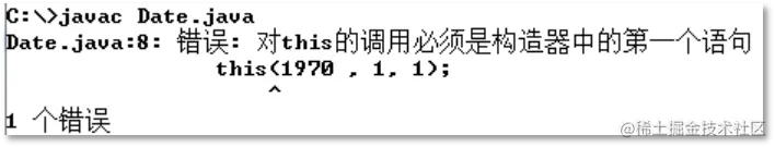 在this()上一行尝试添加代码,请看代码以及编译结果: