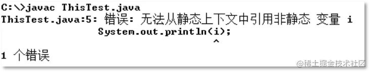 我们来分析一下,首先i变量是实例变量,实例变量要想访问必须先创建对象,然后通过“引用”去访问,main方法是static的方法,也就是说main方法是通过“类名”去调用的,在main方法中没有“当前对象”的概念,也就是说main方法中不能使用this,所以编译报错了。