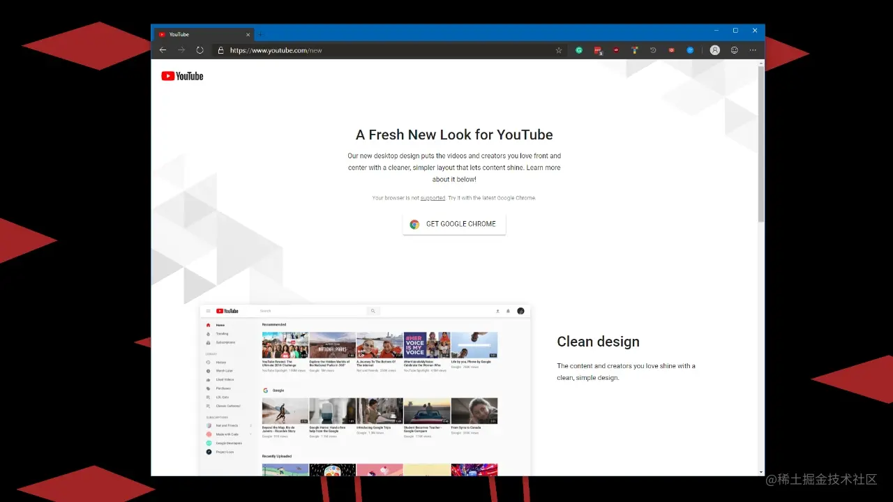 但是在19年,基于Chromium内核的Edge浏览器无法使用最新YouTuBe。