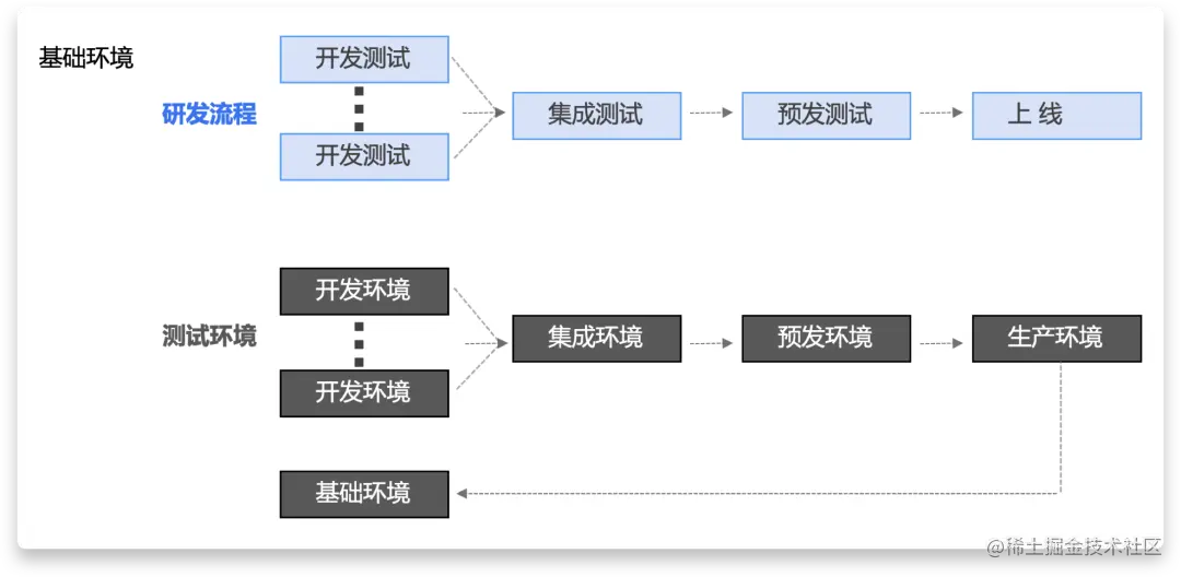 典型的开发流程从开发测试到集成测试,到预发测试,再到发布上线,每个研发阶段都有对应的环境做支撑,而每个环境都会消耗资源和成本,来保持服务在线。传统的版本灰度发布模式面临环境多、资源消耗多、成本高等困境。
