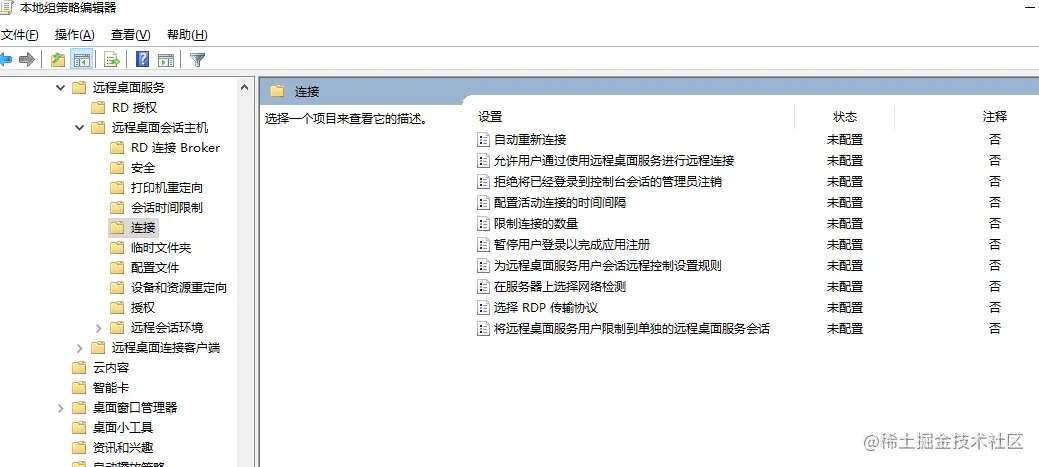 计算机配置>管理模版>Windows 组件>远程桌面服务